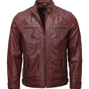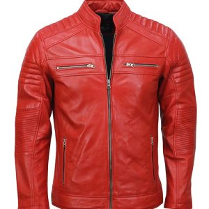 Mens Red Café Racer Leather Motorcycle Jacket Genuine Leather