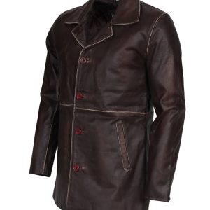 Dark Brown Winter Leather Coat For Men