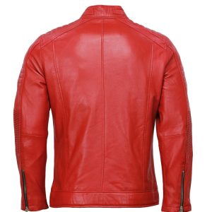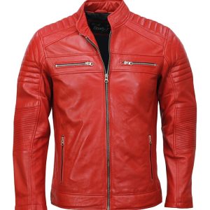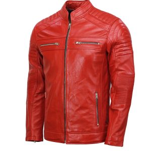 Mens Red Café Racer Leather Motorcycle Jacket Genuine Leather